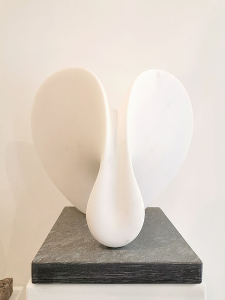 Ses sculptures reflètent la philosophie chinoise de l'équilibre essentiel, souvent traduite en marbre ou en bronze, qui prend la forme de légèreté et de fluidité dans l'espace.