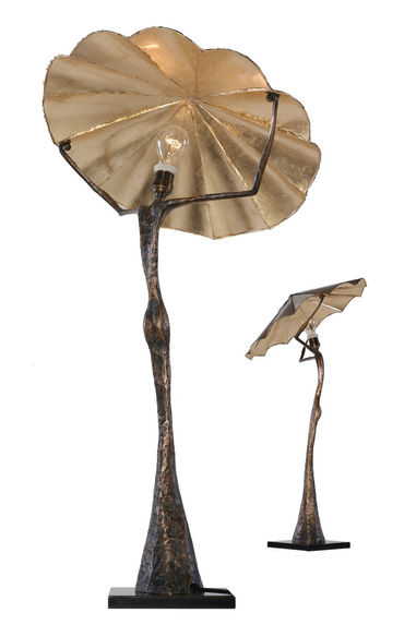 La fréquentation d'un sculpteur statuaire à cette période, le dirige naturellement vers la représentation du corps humain. Le corps féminin a sa préférence. Philosophiquement il pense que la lumière vient des femmes. Des formes élancées, élégantes et glorieuses portent un chapeau à bout de bras. Néanmoins quelques hommes burlesques et dramatiques émergent et s'expriment avec beaucoup de tendresse. L’esthétique du chapeau est un réflecteur qui emprisonne la lumière dans un environnement doré, pour la restituer chaleureuse et envoutante. Ces lampes véhiculent un esprit créateur singulier qui est l'expression du beau.