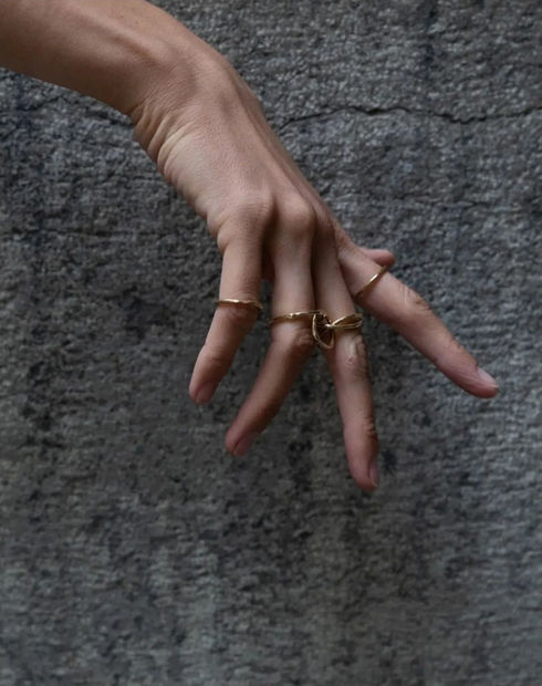 Ses bijoux sont travaillés à la main comme des sculptures, chaque pièce est unique, réalisée en bronze* par la technique de la cire perdue. La cire perdue étant un procédé de moulage antique de précision pour obtenir une sculpture en métal (tel que argent, or, bronze, cuivre, aluminium) à partir d’un modèle en cire.